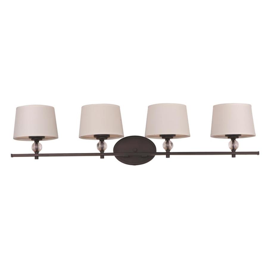 Dimmable transitional-style 4-light bath vanity. Oil rubbed bronze finish with glass orb accent. Soft, white fabric shade diffuses light evenly. Maxim Lighting Since 1970, Maxim Group Companies, headquartered in California, have beenmitted to providing a diverse selection of high quality...